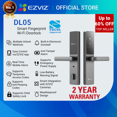 Ezviz DL05 Smart Wi-Fi Biometric Fingerprint Door Lock with built-in Electronic Doorbell | Weatherproof | Multiple Unlock Methods | Free APP Control | Anti-peep Code | Real-Time Alerts | Anti-Tamper Alarm | Integration with EZVIZ Cameras