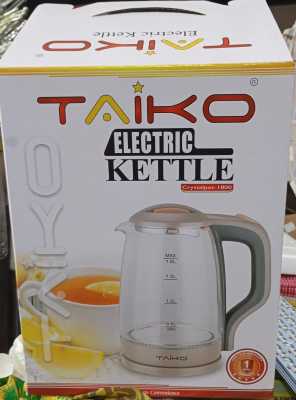 Electric glass kettle 1.8-L Taiko Kettle Beutiful Glass Disign Kettle Kitchen Kettle Glass Tea Kettle Stainless Steel Electric Kettle LED Indicator Auto Shut-Off & Boil-Dry Protection, BPA Free,1.8-Liter, Black