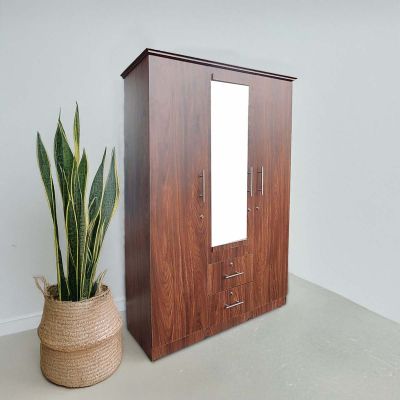 3 door, Melamine Cupboard /Almari (6x4 Fit) , Tow Loker & mirror , drack brown, - 5 year warranty