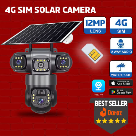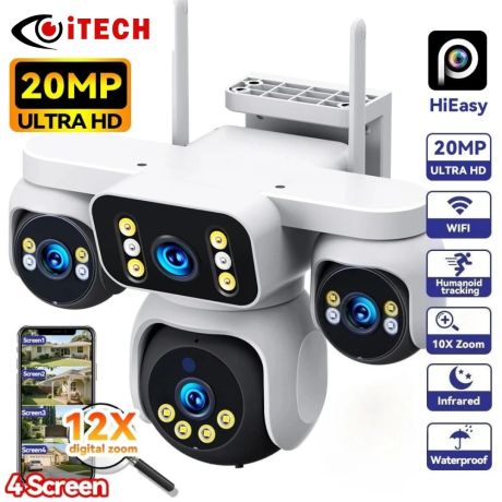 ITECH 4G SIM 4 Lens Security Camera! 20MP Crystal Clear, 12X Zoom, WiFi Outdoor Mini Cam with Spotlight & Siren Alarm HISEE