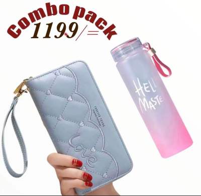 Combo Pack 2 In 1 Women Fashion Wallets And Glass Hello Master Water Bottle