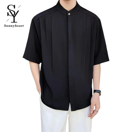 Sunnyheart Men Solid Color Shirt Men's Summer Stand Collar Ice Silk Shirt Casual Business Top for Men Lightweight Half Sleeves Cardigan for Office Wear Lightweight Men Top