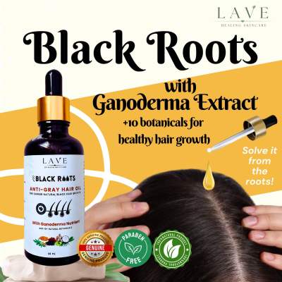 Black Roots Anti Gray Hair Oil and HairFall Solution 100% Natural for Healthy Hair Growth Hair Serum with Ganoderma and Blackseed 50ml