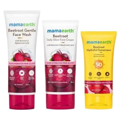 Mamaearth Combo Beetroot Hydraful Sunscreen50g & Face Wash -100ml & Daily Glow80g